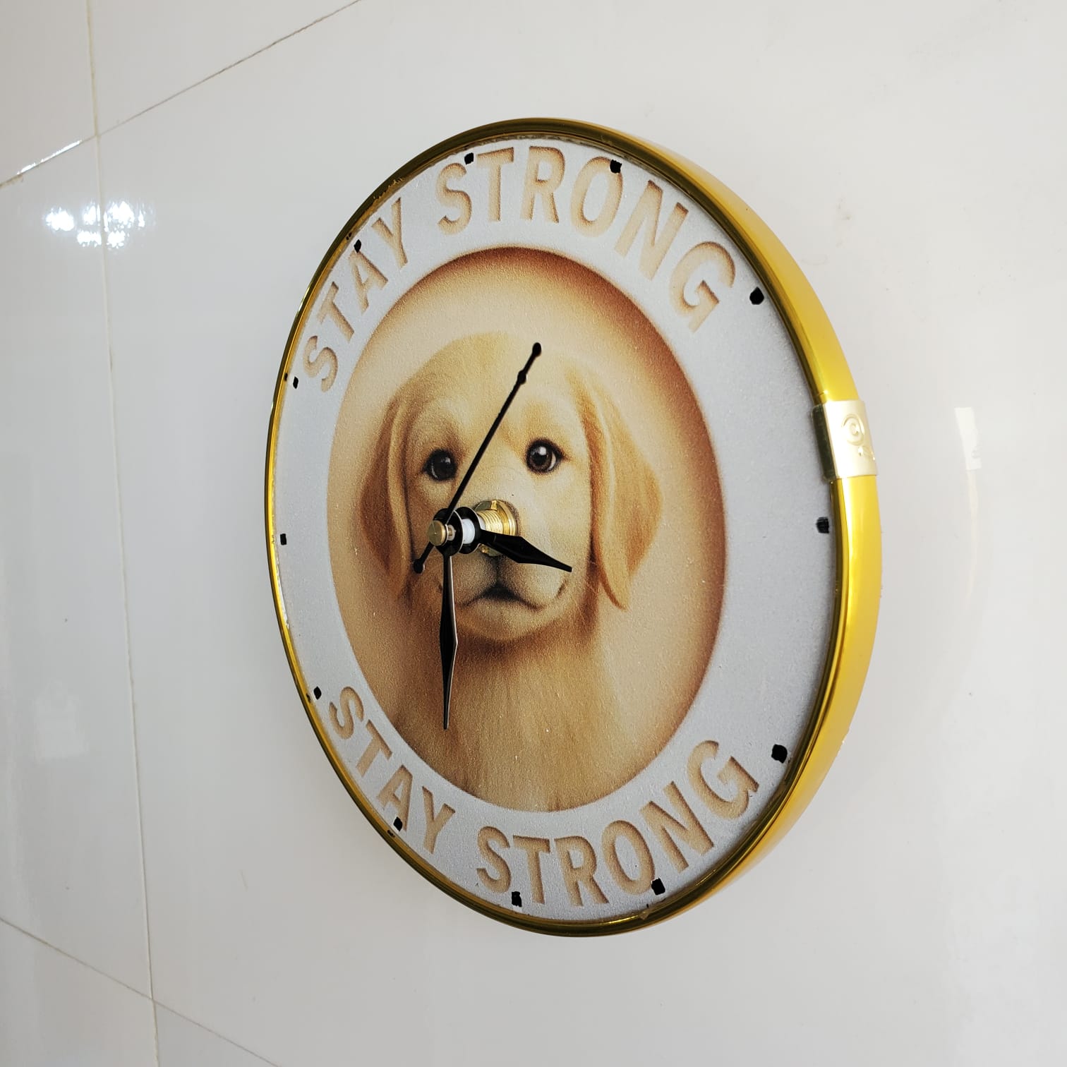 Baby Dog UV Printed Wooden Wall Clock With Golden Frame 6.5 Inch (P0006)