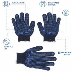Safety gloves, cotton work gloves, industrial grip gloves, construction gloves, multipurpose work gloves, PVC dotted gloves, reusable gloves, protective gloves for work, Frontier safety gloves.